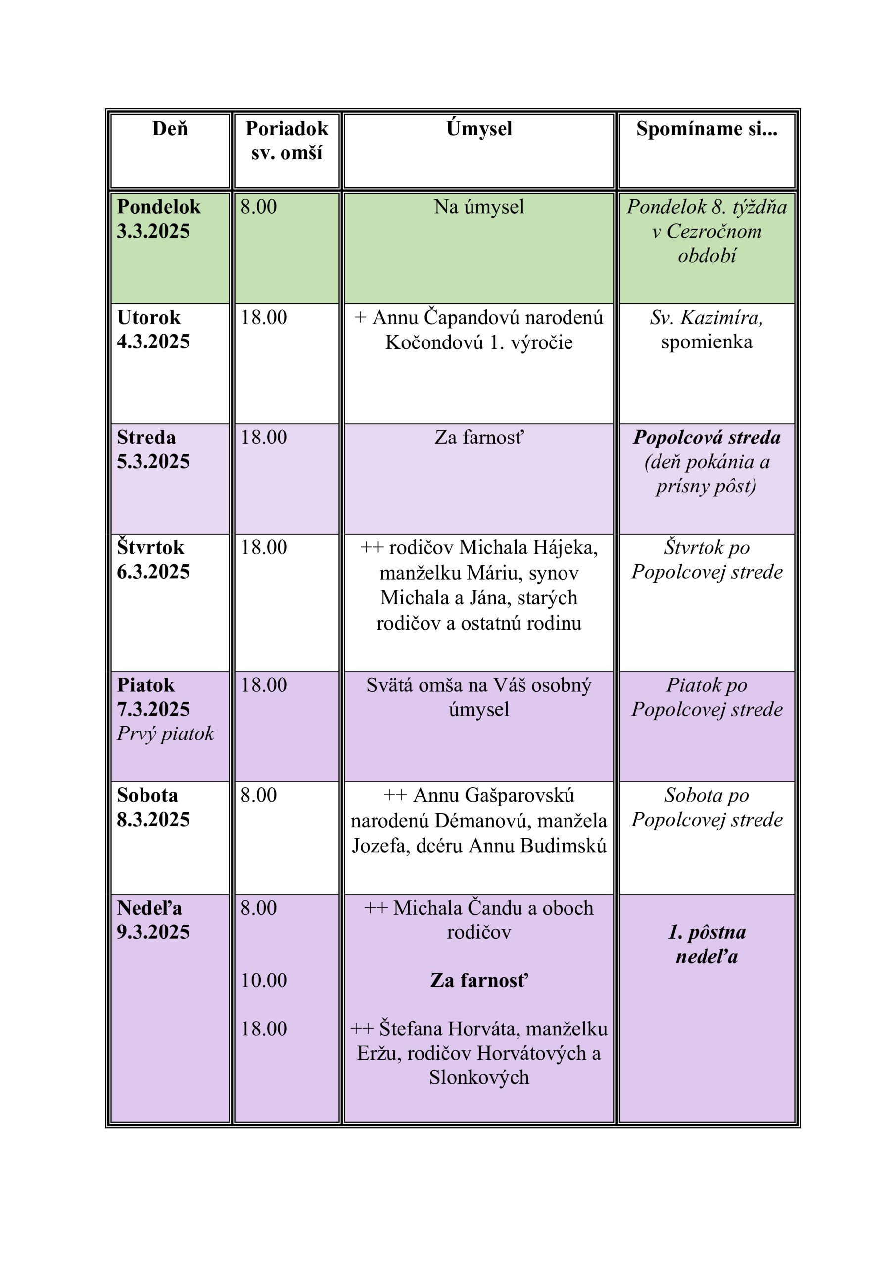 Raspored svetih misa (8. nedelja kroz godinu u godini C)
