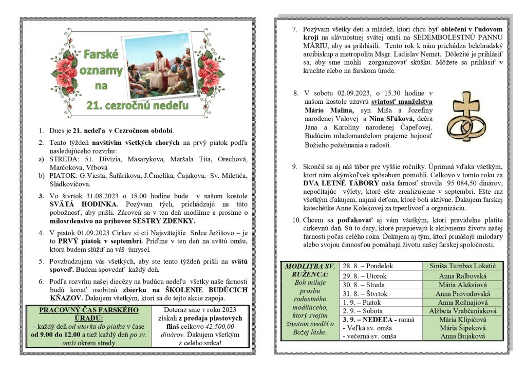 Novi župni listić naše župe (21. nedelja kroz godinu A)